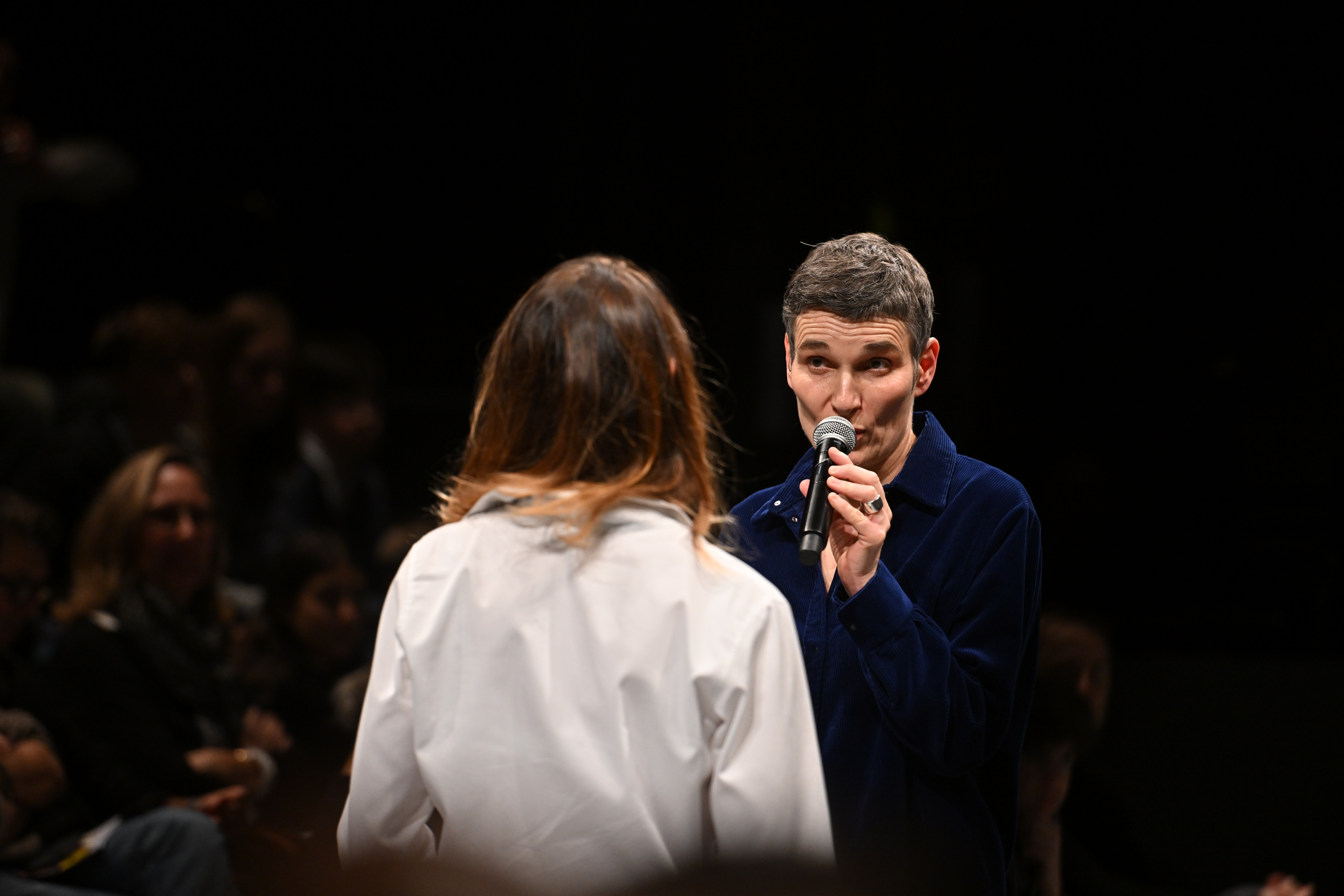 Amid the audience, the Maguelone duo juggles a host of questions that resonate deeply with us. What do our first and last names say about us? How have we come to terms with them? What fantasies, stories, and legacies do they carry? Then, other voices rise up, contributing to the debate, singing, and forming a virtuoso chorus whose score shifts from Gregorian chant to beatboxing, passing through hip hop...