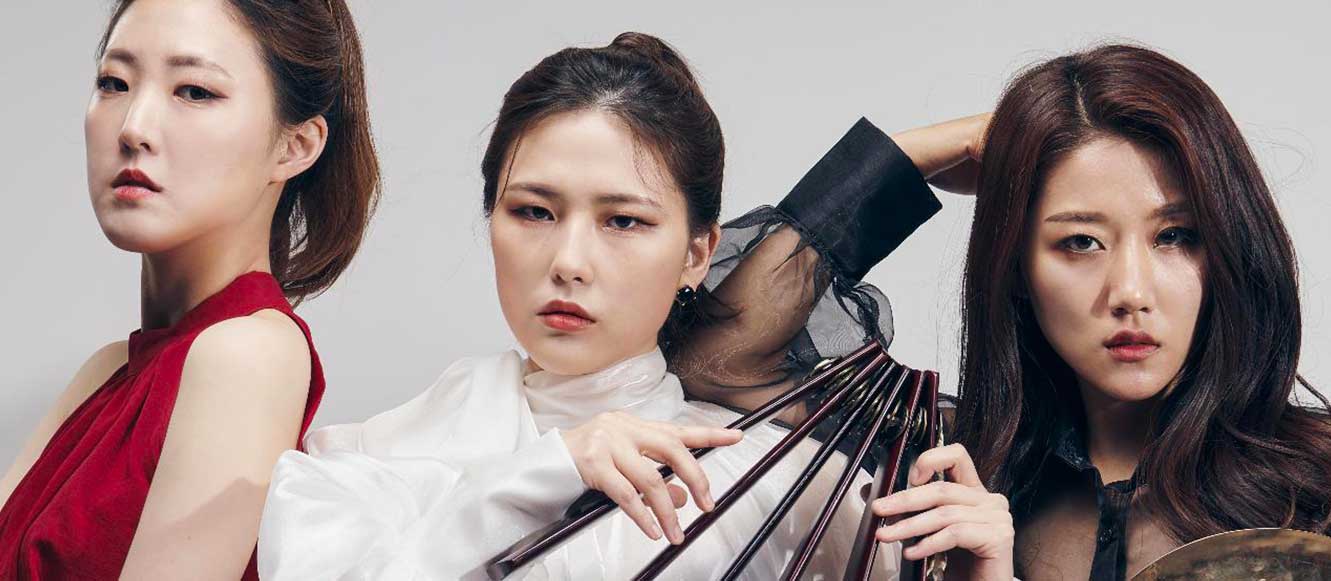 The female percussion trio, explorers of the Gugak tradition. Inspired and virtuosic, Groove& explores the infinite richness of Gugak, a term that encompasses Korea's great musical and choreographic traditions—from court music to folk songs, shamanic rituals, and theater. Groove&'s uniqueness also lies in the composition of the group, a female percussion trio, at a time when women are rarely present in the Gugak tradition. Their performances are brimming with musicality and harmonic and rhythmic inventiveness, delivered with a mastery that requires both finesse and skill, a sense of improvisation, and a scholarly interpretation of complex arrangements.