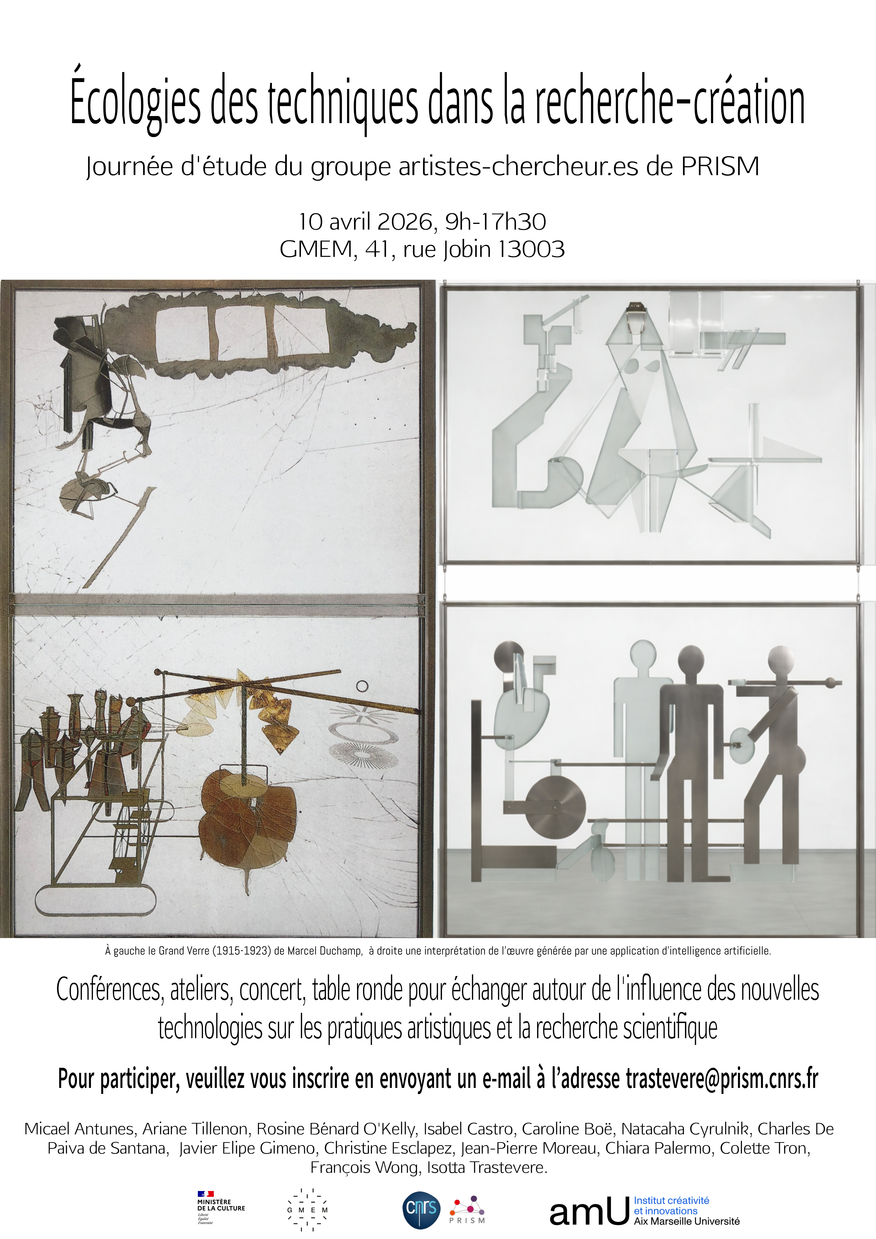 The symposium “Technological Ecologies in Research-Creation,” organized by the group of artist-researchers at the PRISM research unit (UMR 7061), explores two themes: the appropriation of new technologies through artistic practice and the epistemology of research-creation. These research themes will be addressed from an interdisciplinary perspective (visual arts, film, literature, and computer music).